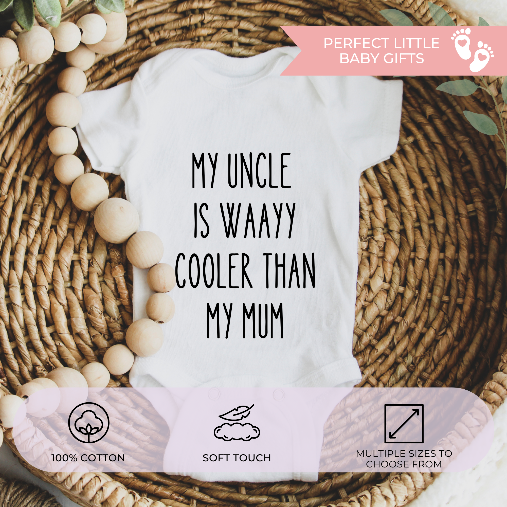 Let your little one rock this hilarious onesie and show off their cool uncle! This funny baby onesie adds a touch of humour to any outfit while keeping your baby comfy. Perfect for family gatherings, playdates, or just lounging at home (and maybe poking fun at mum).