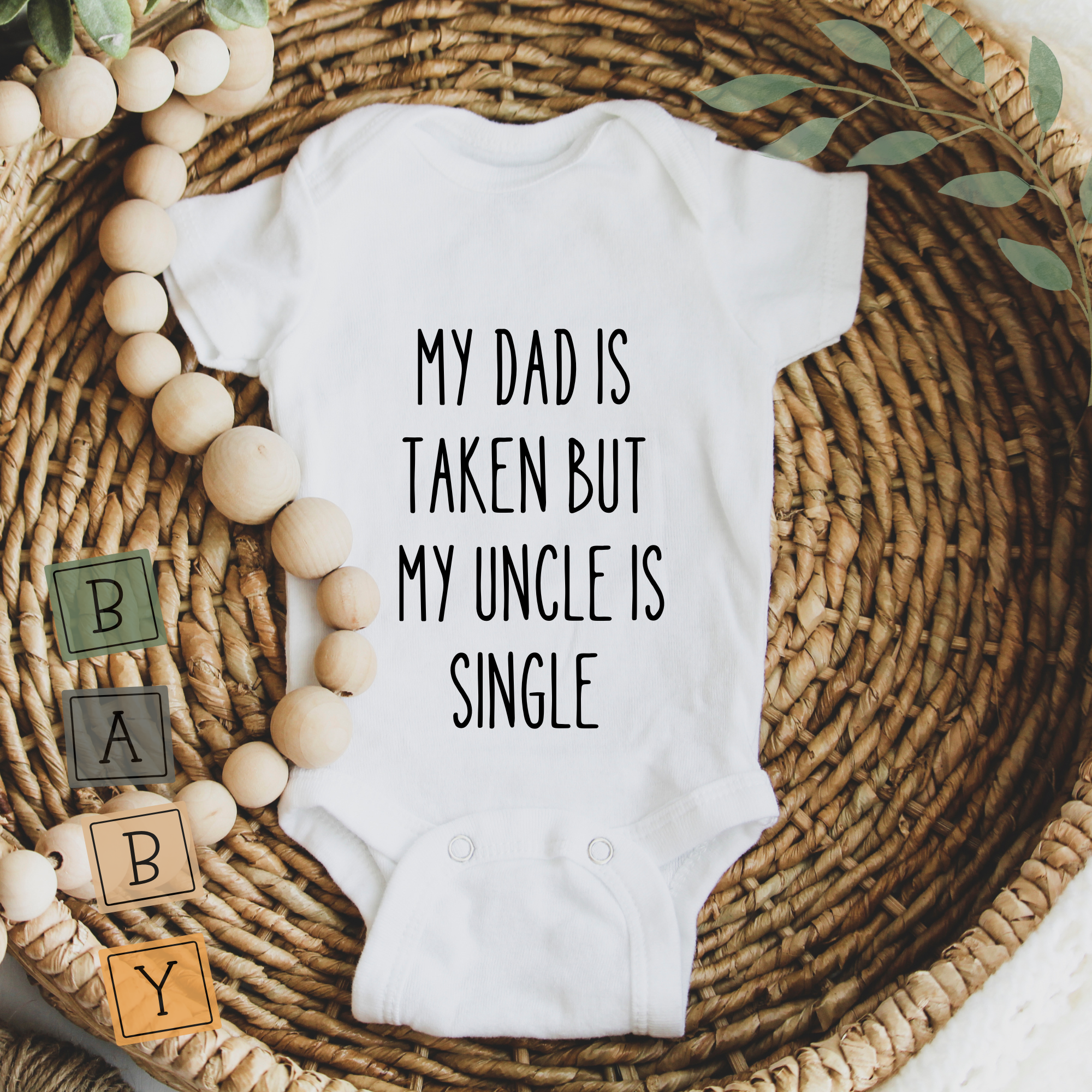Get your little one ready to charm the world with our Baby Onesie Funny! With a hilarious slogan and cute design, this onesie is a guaranteed conversation starter. And who knows? Maybe it'll help your uncle find love! (We can't make any promises though 😉)
