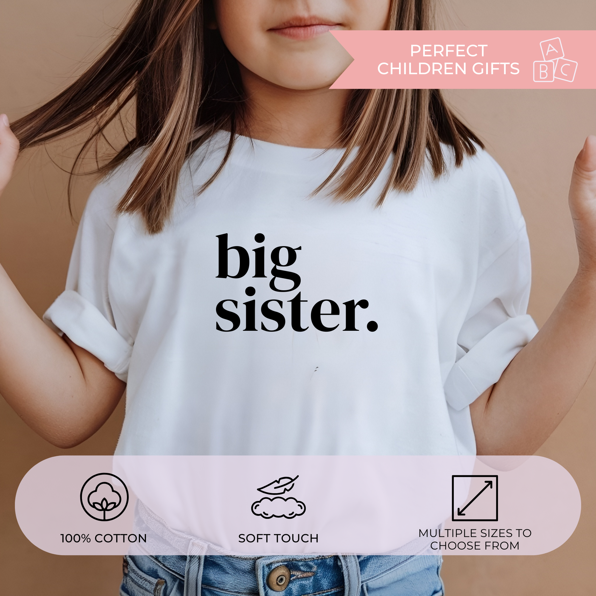Make your family announcement extra special with our Big Sister tee — a chic, minimalist design perfect for photos, celebrations, or everyday wear. Soft, comfy, and printed locally in the Mornington Peninsula, it’s a beautiful way to share your growing family’s news.