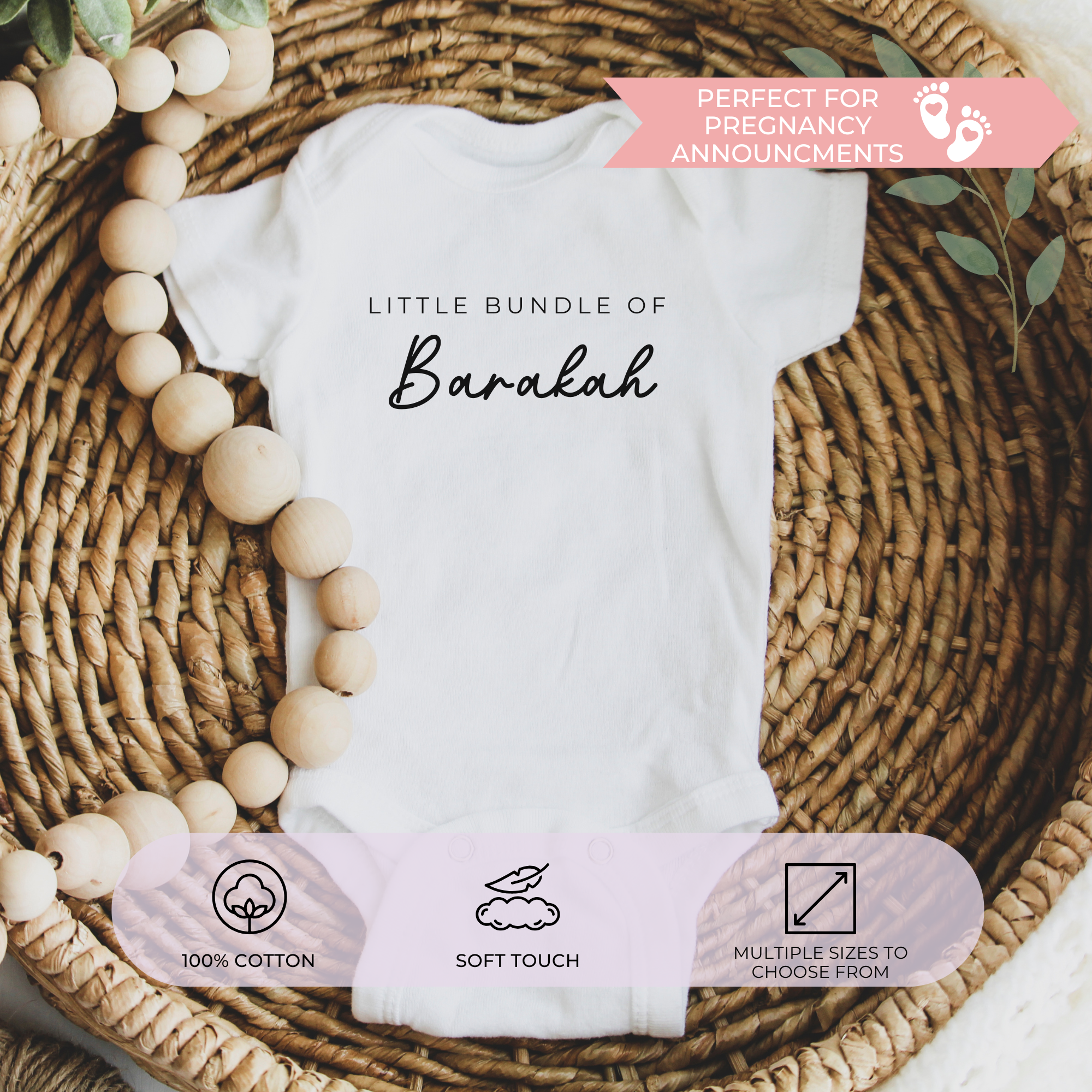 Celebrate your little blessing with our baby bodysuit – a heartfelt and meaningful gift for newborns. Whether it’s for a baby shower, Eid, or to welcome a precious arrival, this soft cotton outfit is perfect for marking beautiful beginnings.